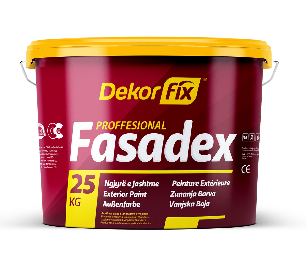 Dekorfix Fasadex është ngjyrë dispersive e kualitetit të lartë në bazë të rrëshirës artificiale për përdorim të brendshëm. Mbulueshmëri e mirë, e lehtë për punë dhe thahet shumë shpejtë. Mund të pigmentohet sipas dëshirës.